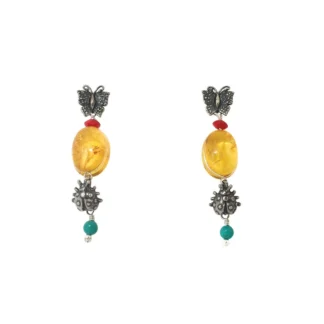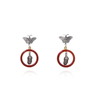 ARETES MIXTOS CRISÁLIDA Y HOJA CON MARIPOSA