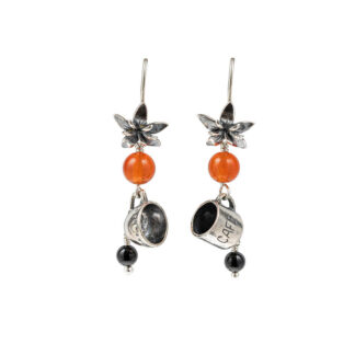 ARETES FLOR DE CAFÉ MEDIANA Y TAZAS