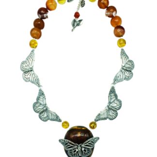 COLLAR MONARCA AL VUELO SOBRE ÁMBAR