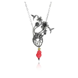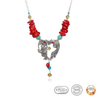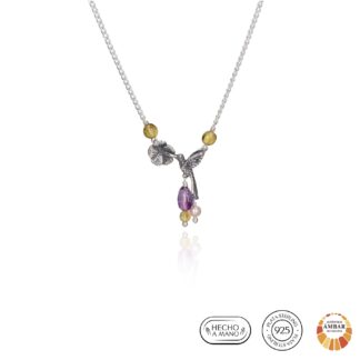 GARGANTILLA CORAZÓN CON FLORES Y COLIBRÍES