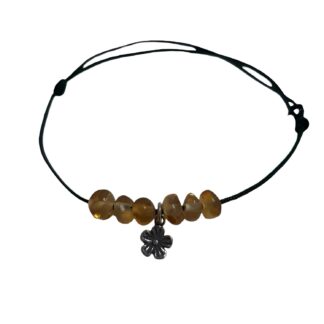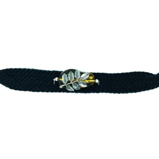 PULSERA DE PIEL TRENZADA CON HOJA DE AÑIL SOBRE ÁMBAR
