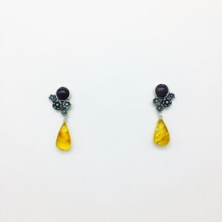ARETES BOLA DE ÁMBAR Y FLORES