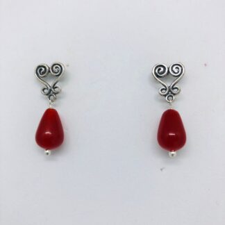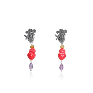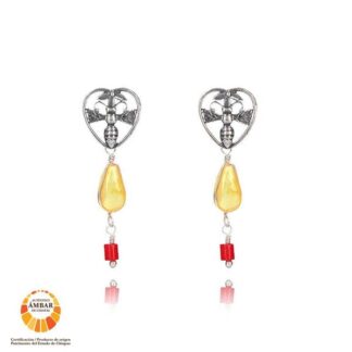 ARETES CORAZÓN CONCHA NACAR Y PIEDRA